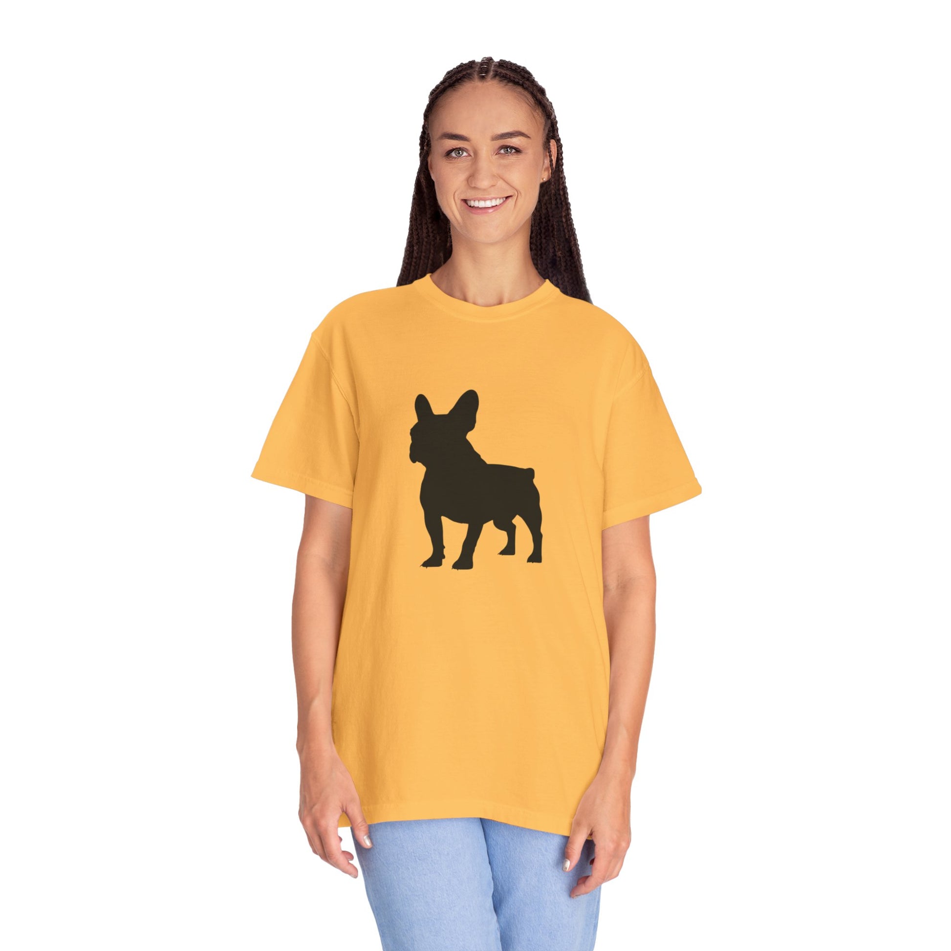 The French Bulldog, with roots in 19th-century France, evolved from English Bulldog ancestors into a pint-sized bundle of joy with a suave, bat-like charm! These adorable, smooth-coated companions are all about love, loyalty, and a playful spirit, making them the perfect muse for your stylish, feel-good t-shirts! With their big-eyed affection and snuggly, easygoing vibe, Frenchies bring a chic dose of happiness to every cuddle session!
