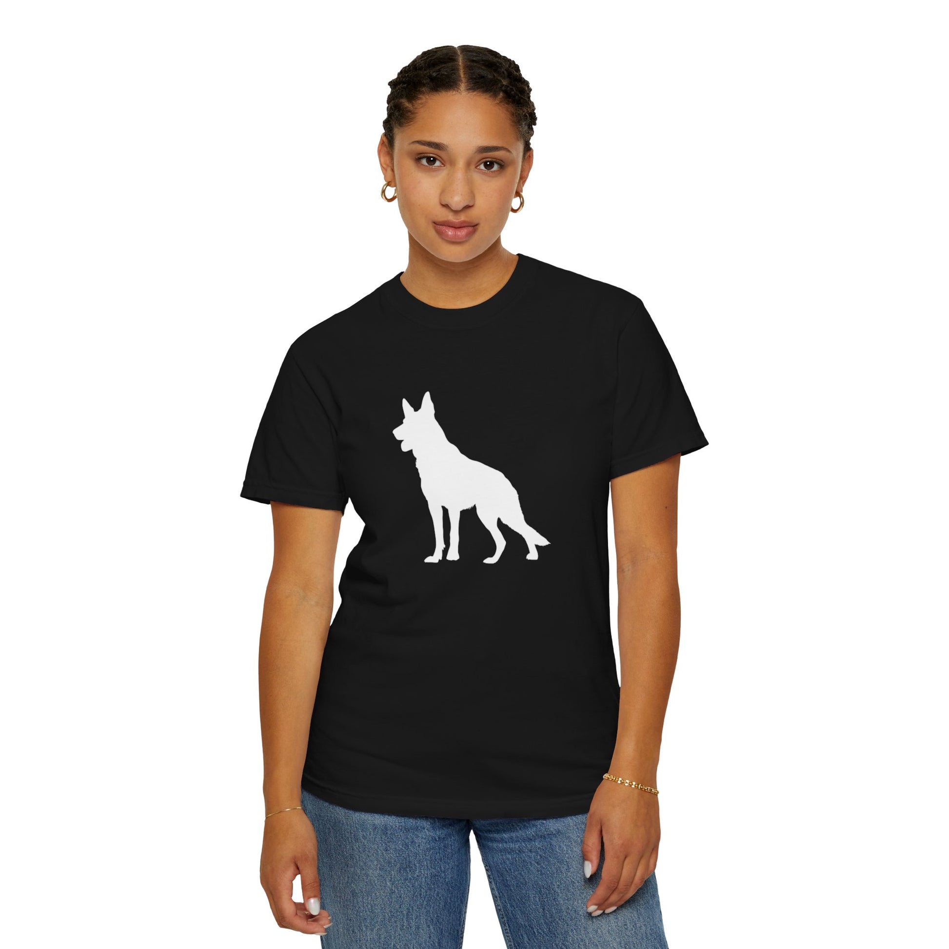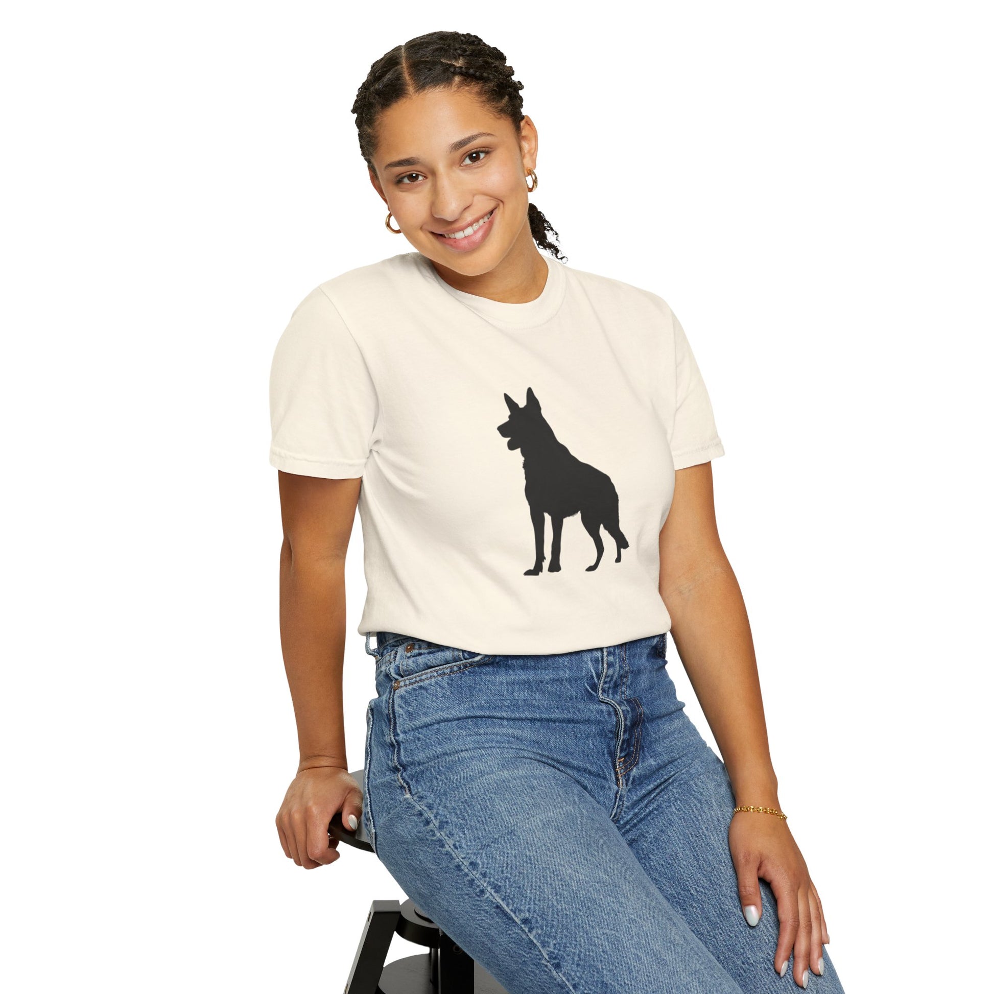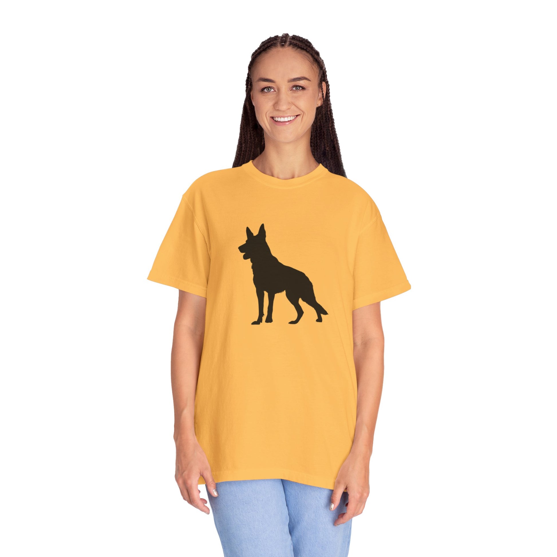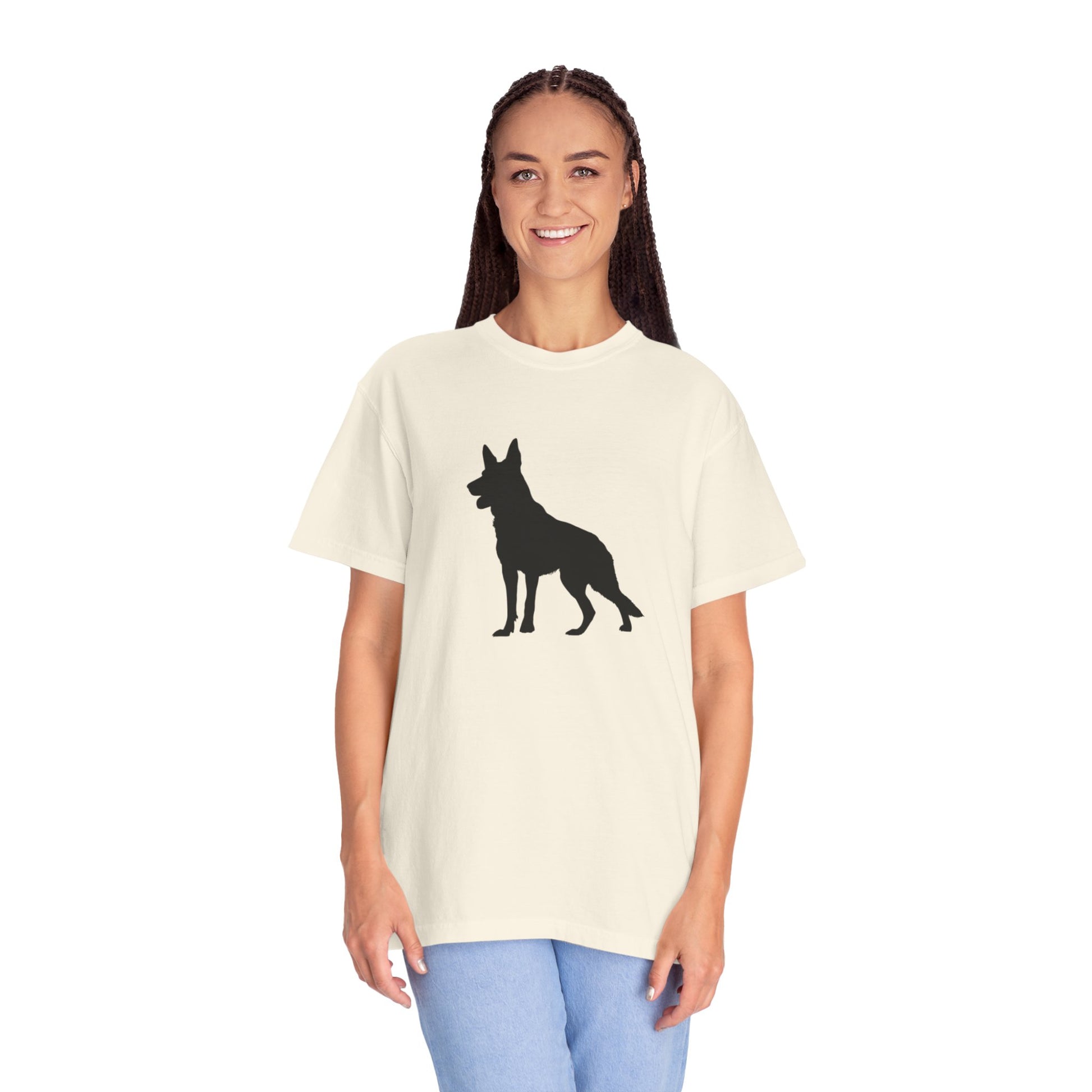 The German Shepherd, hailing from late 19th-century Germany, was bred as a noble working dog, herding with unmatched intelligence and a loyal, protective heart! These majestic, energetic pups brim with courage, devotion, and a playful streak, making them the perfect bold inspiration for your dynamic t-shirts! With their proud stance and warm, steadfast spirit, German Shepherds bring a dash of heroism and joy to every adventure!