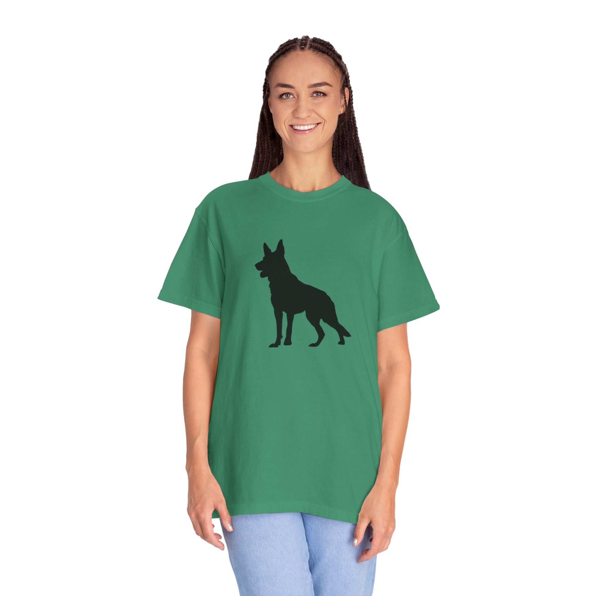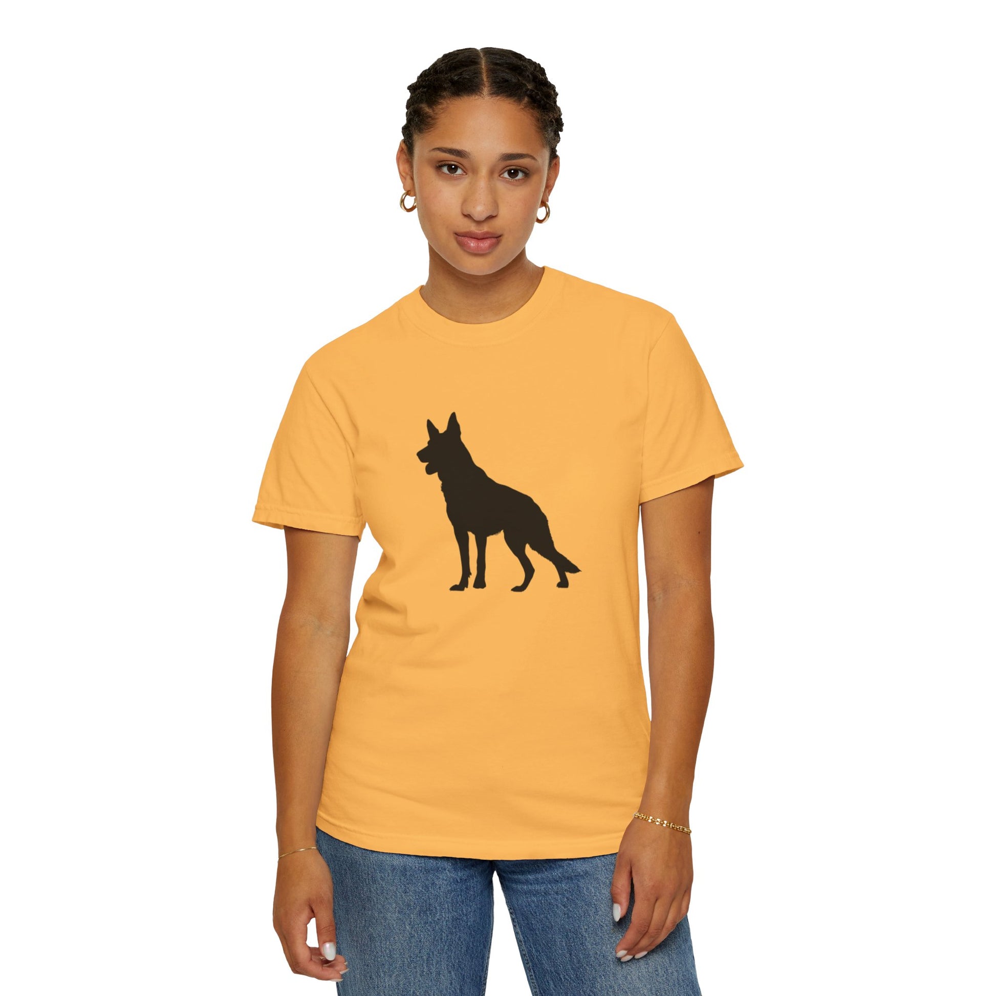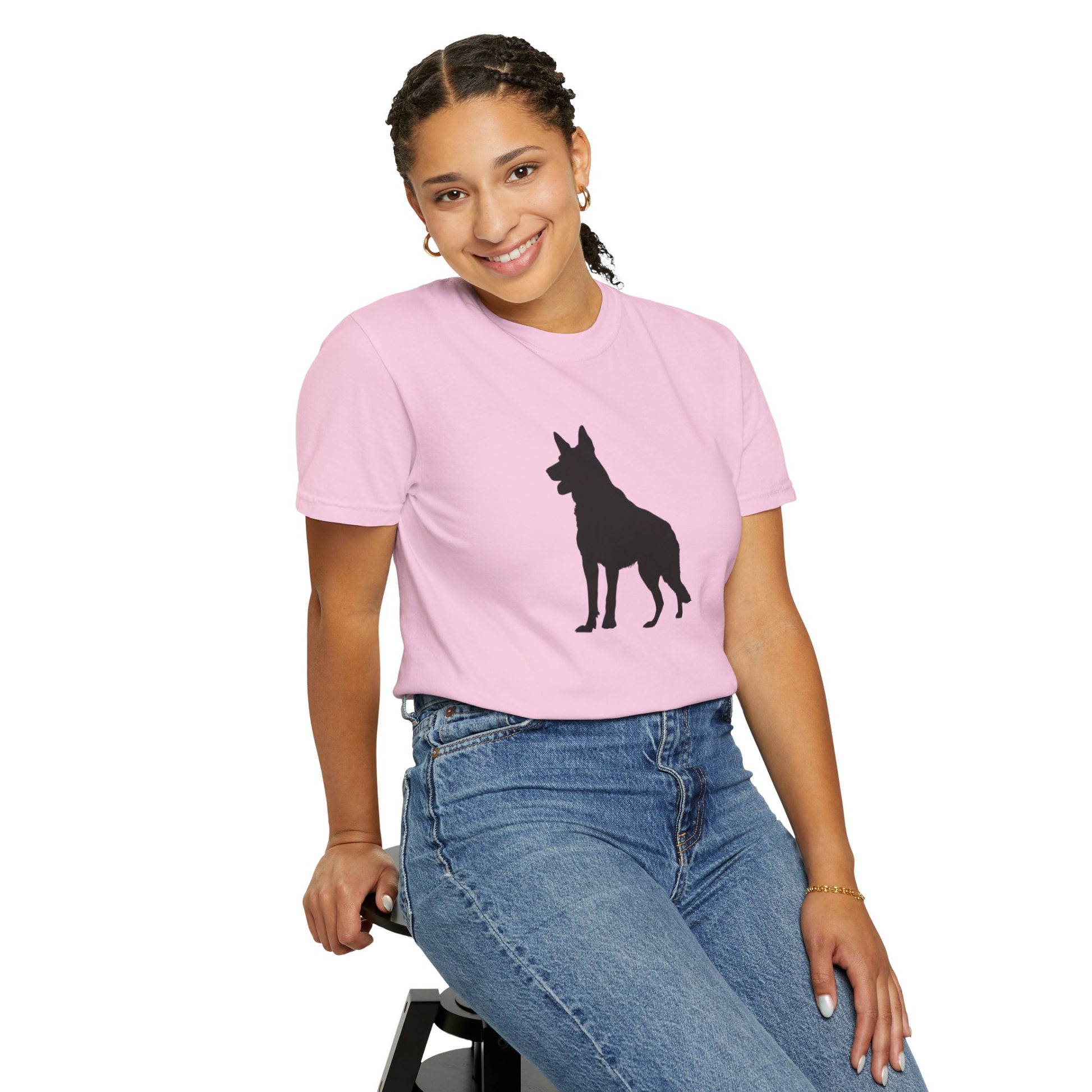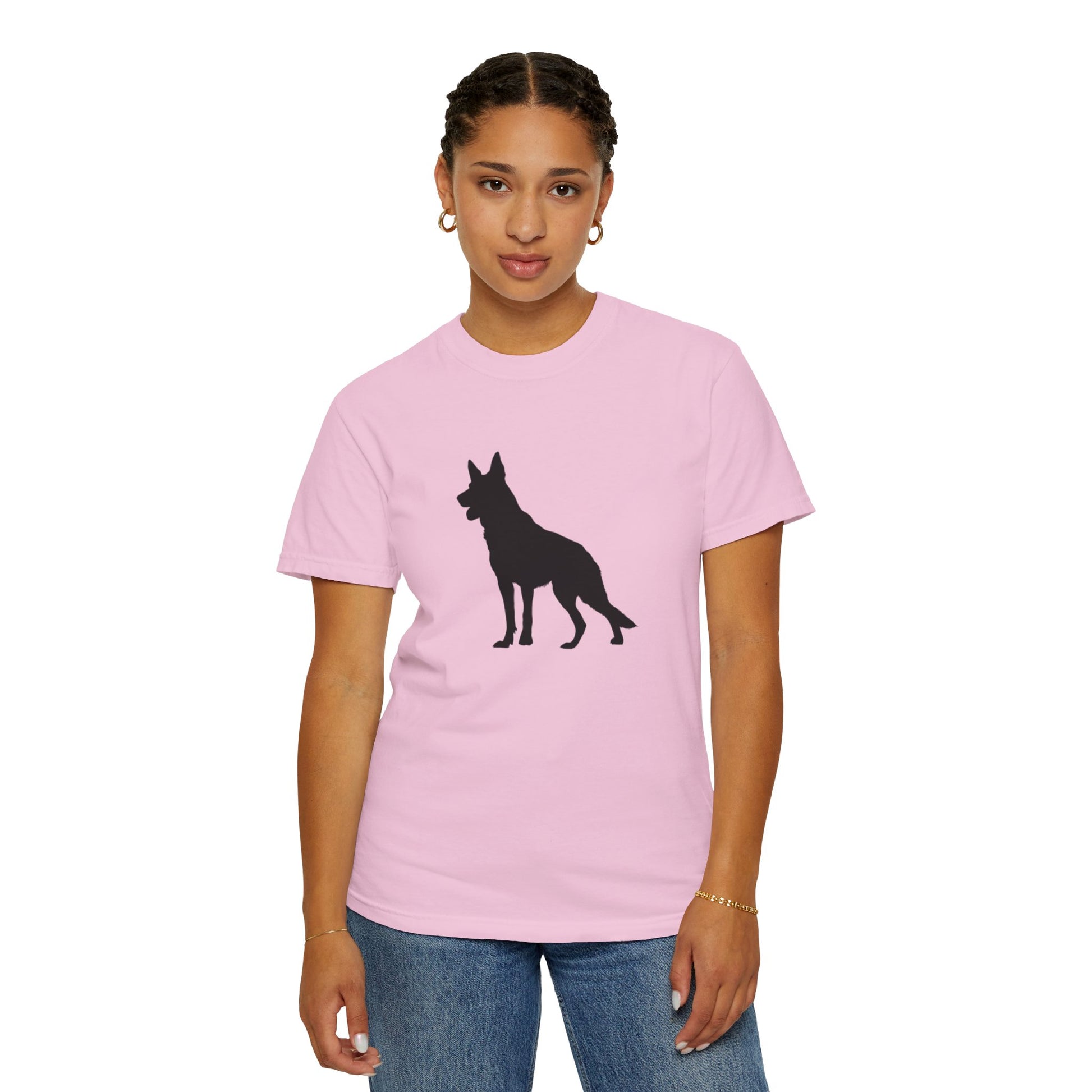 The German Shepherd, hailing from late 19th-century Germany, was bred as a noble working dog, herding with unmatched intelligence and a loyal, protective heart! These majestic, energetic pups brim with courage, devotion, and a playful streak, making them the perfect bold inspiration for your dynamic t-shirts! With their proud stance and warm, steadfast spirit, German Shepherds bring a dash of heroism and joy to every adventure!